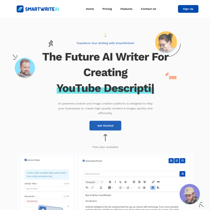 SmartWriteAI is an AI-powered content and image creation platform that helps businesses create high-quality content and images quickly and efficiently. The platform is designed to transform your writing by using artificial intelligence technology.